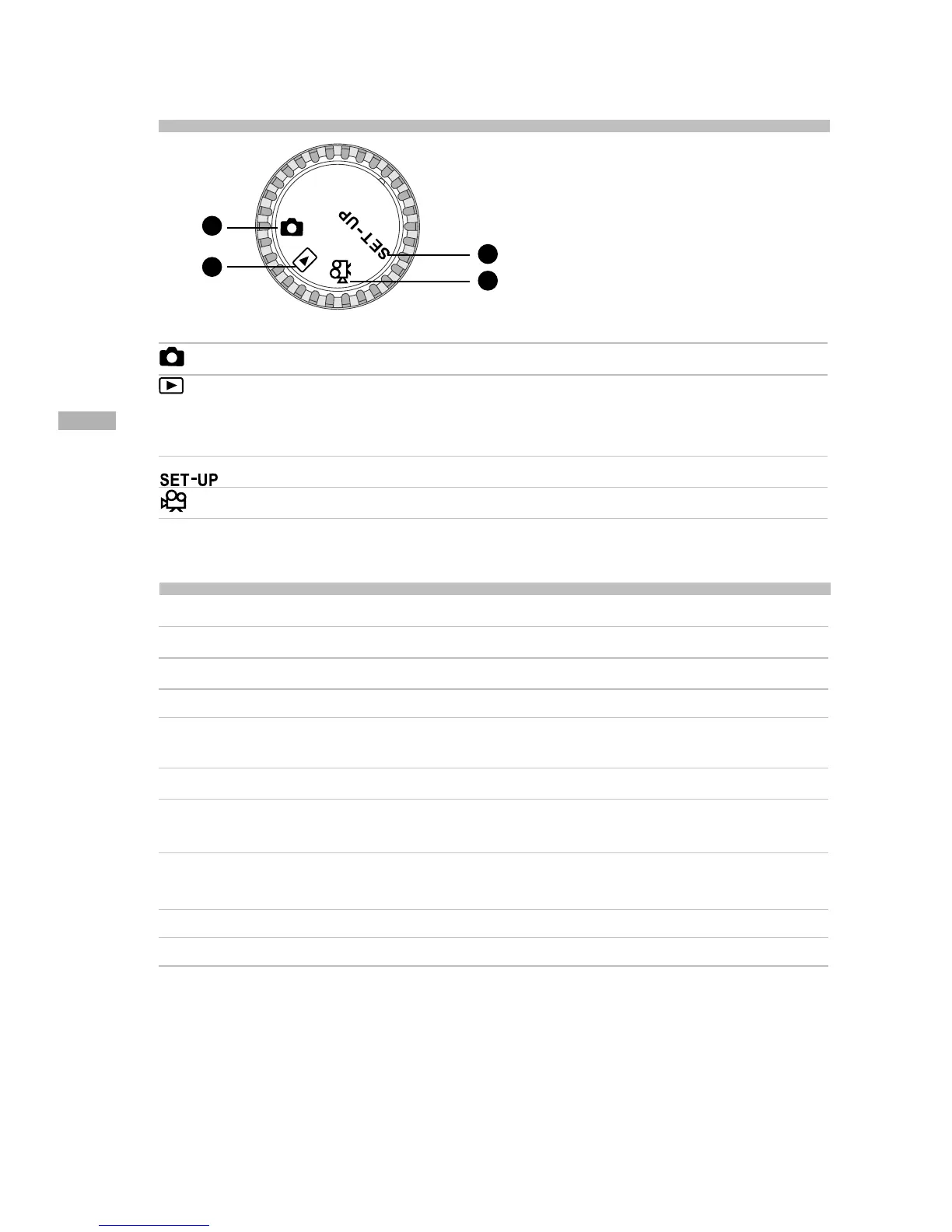 Setup mode Use this mode to adjust camera settings.