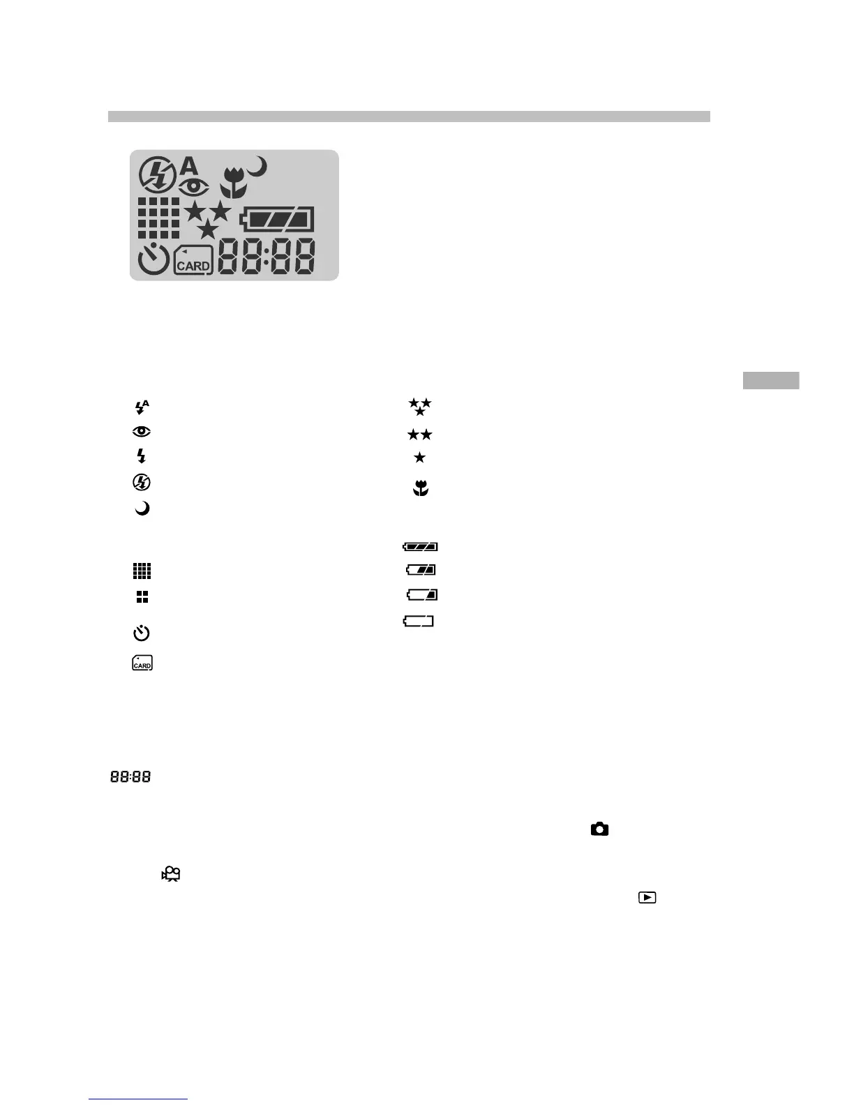 Digital indicator (This display varies according to the camera mode setting.)