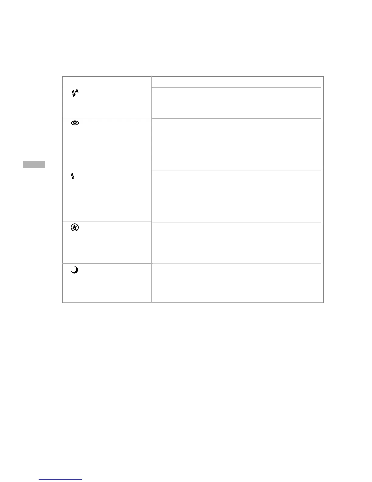 button on top of the camera. The table below will help choose the appropriate flash mode: