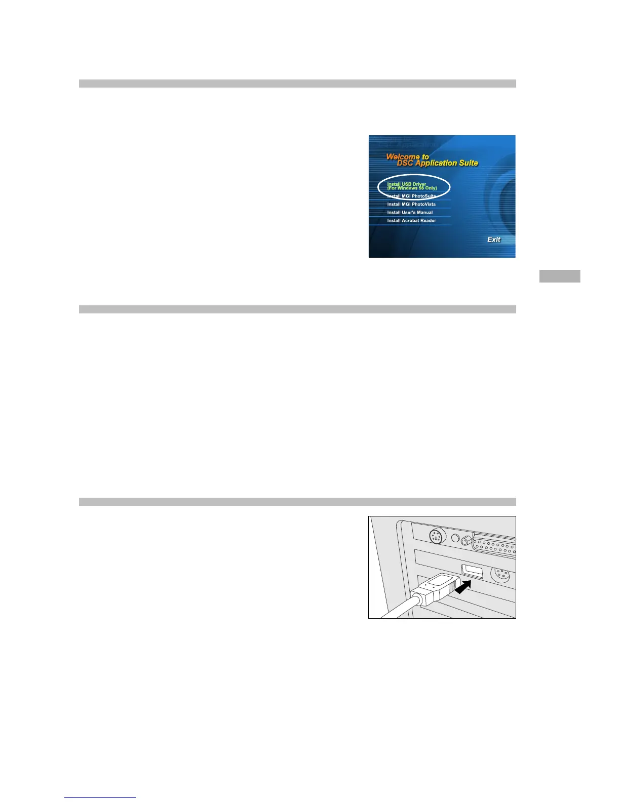 The USB driver on the supplied CD-ROM is exclusively for Windows 98. Installing