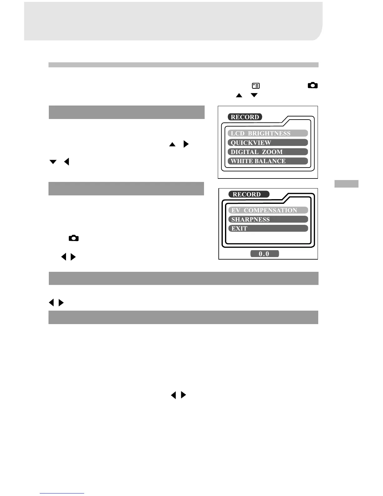 adjust EV compensation settings, etc. To do this, press the button in the