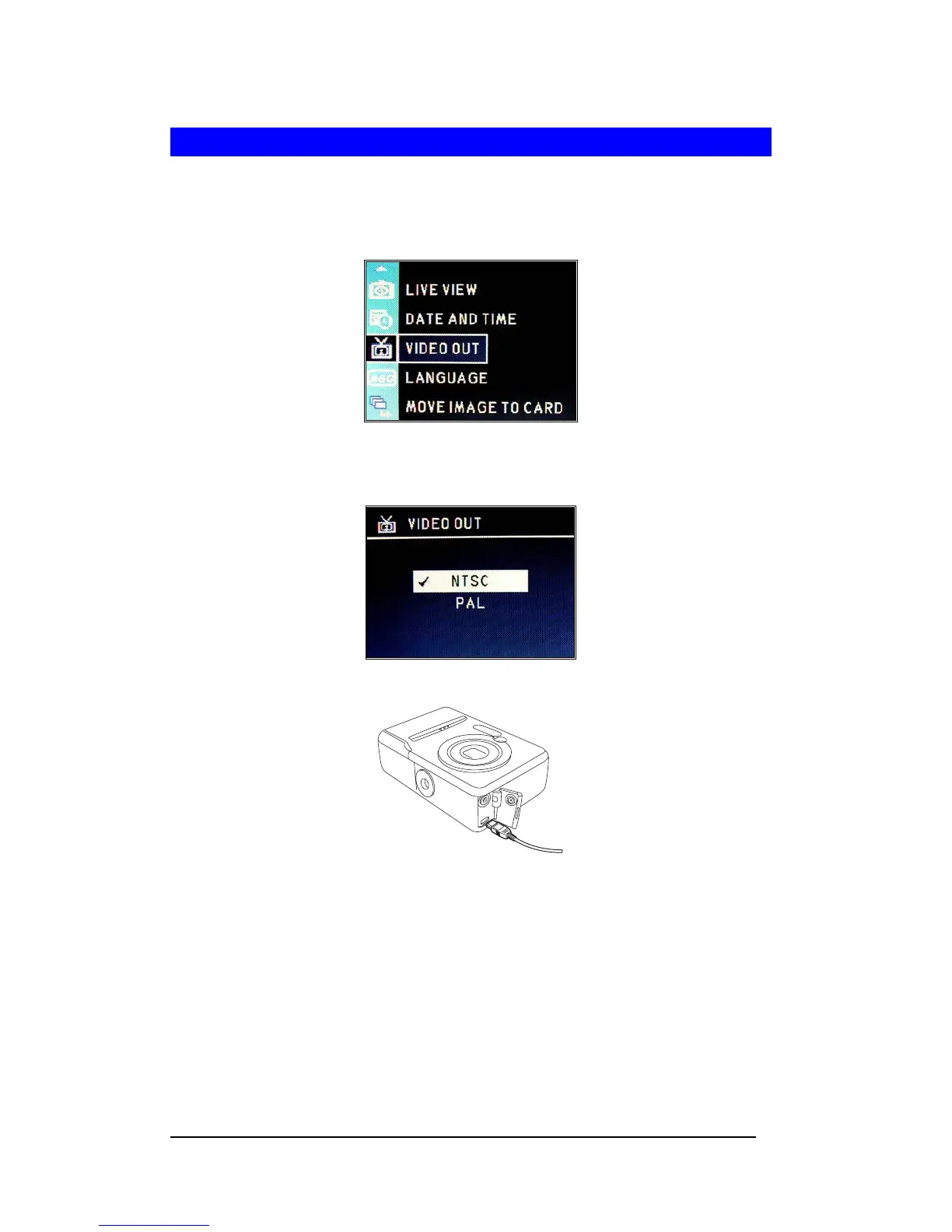 6 Turn the TV on and set the TV input switch to Video In. Turn the Camera ON.