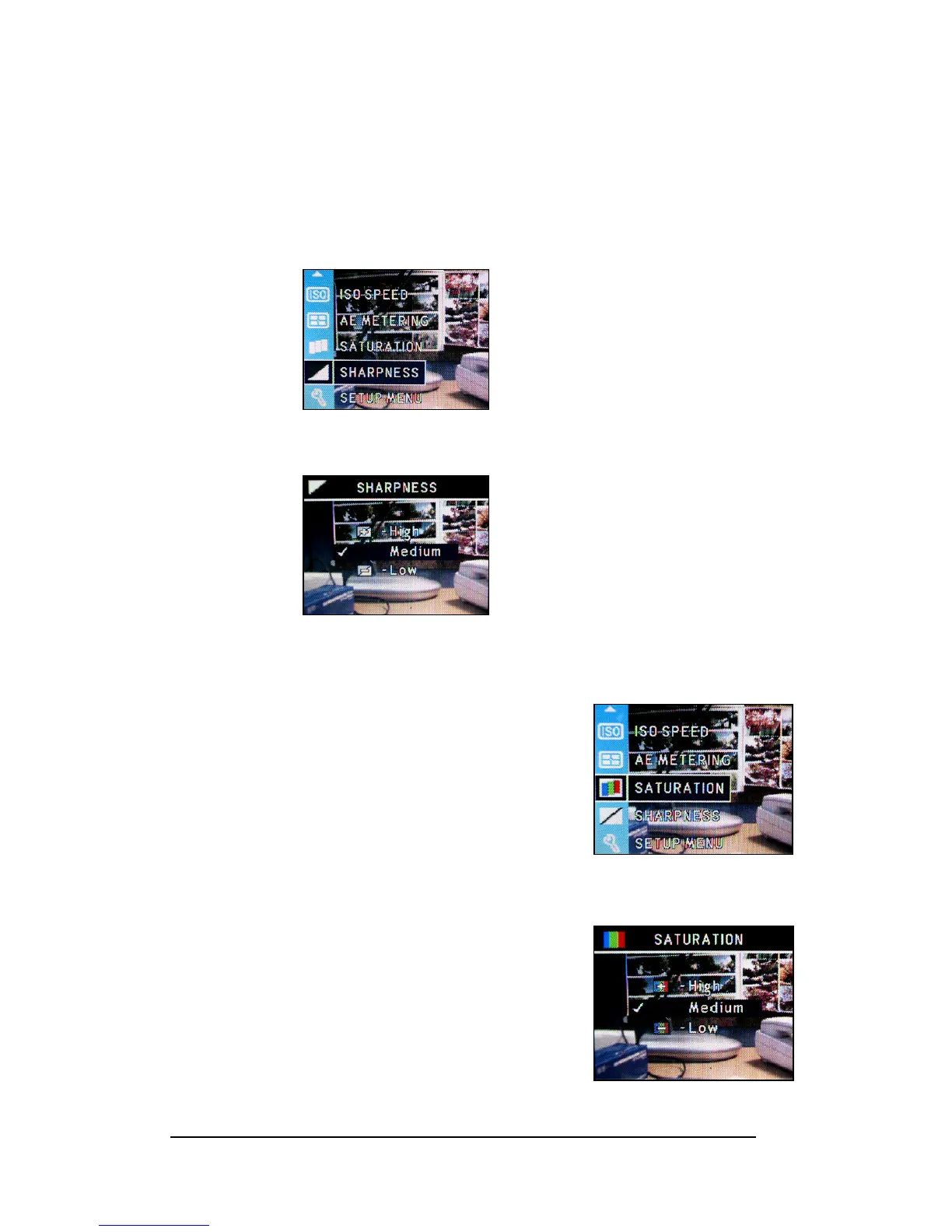 This camera provides 3 levels of image sharpness- High, Medium and Low.