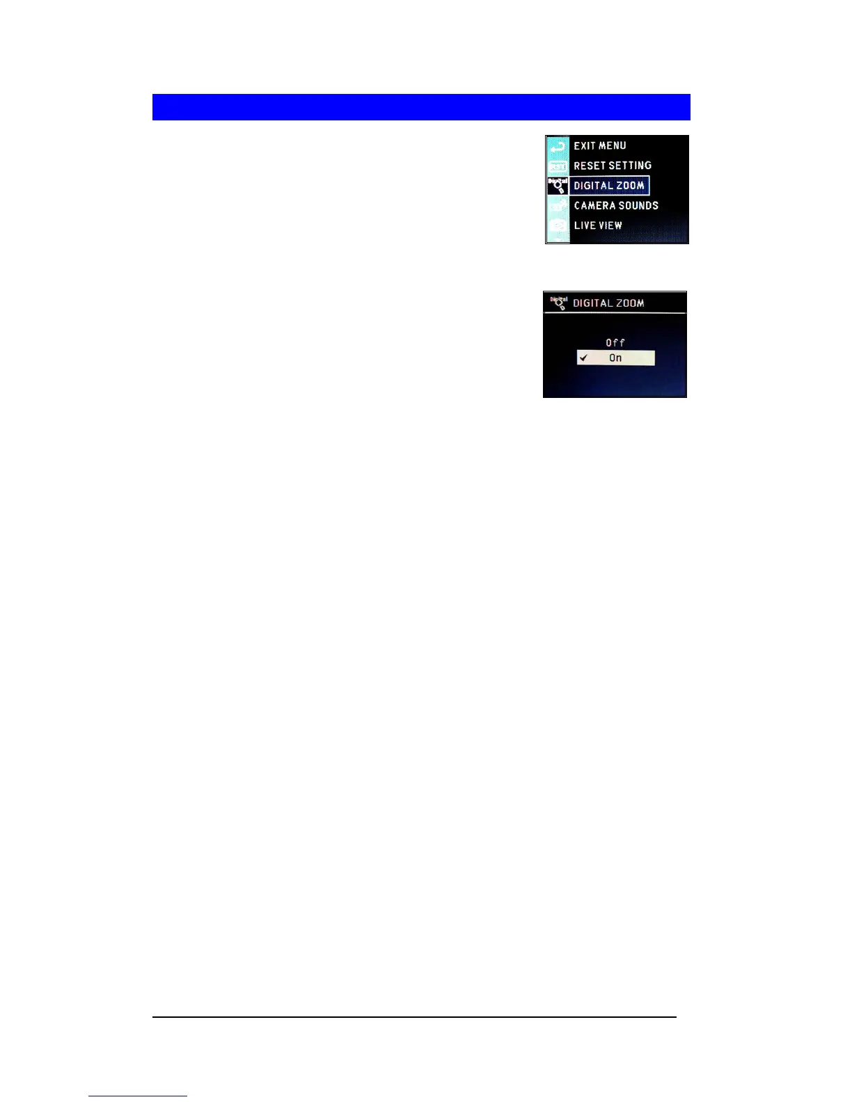 6 Press “Off” to disable Digital Zoom and press