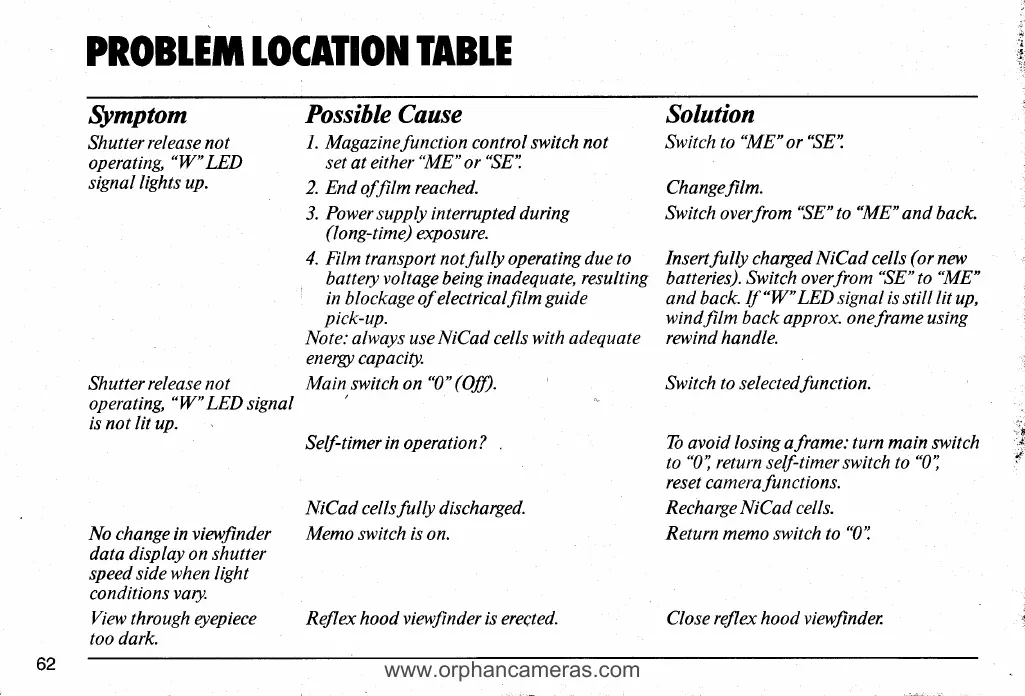 4. Film transport notfully operating due to Insertfully charged NiCad cells