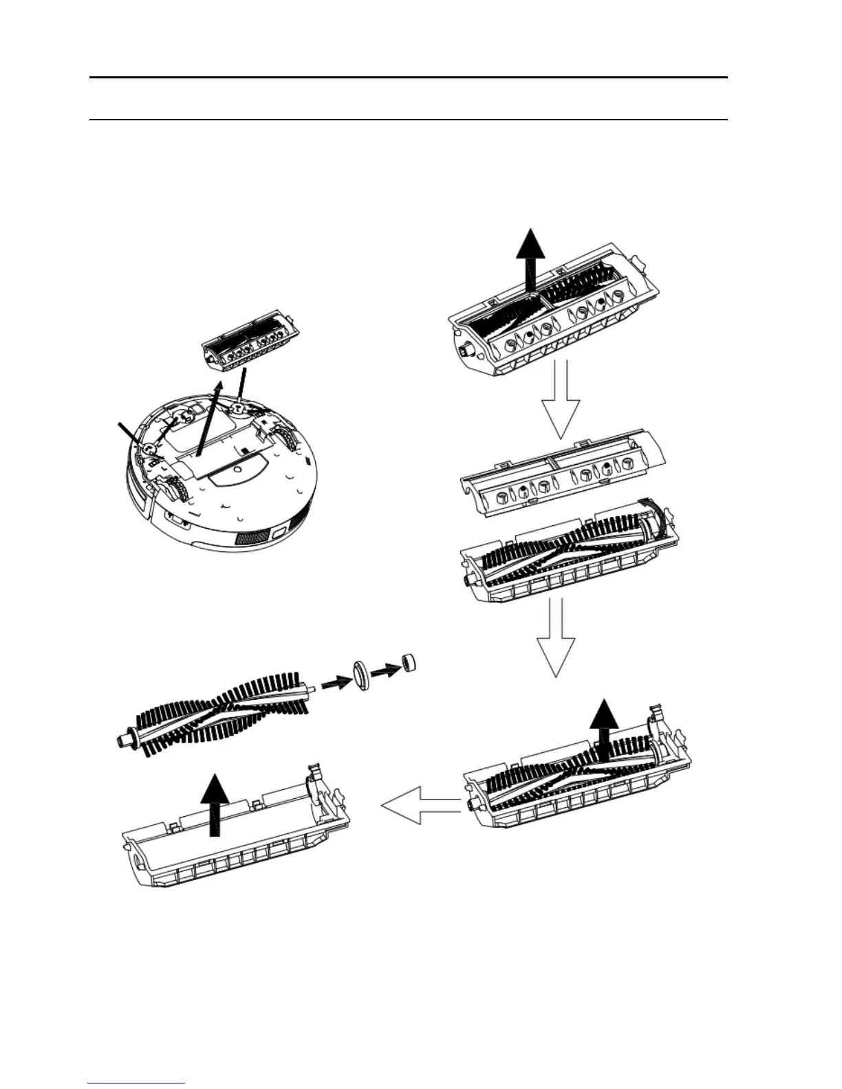Take out the roller brush kit from robot, remove the roller brush, then clean it and its cover-plate, as