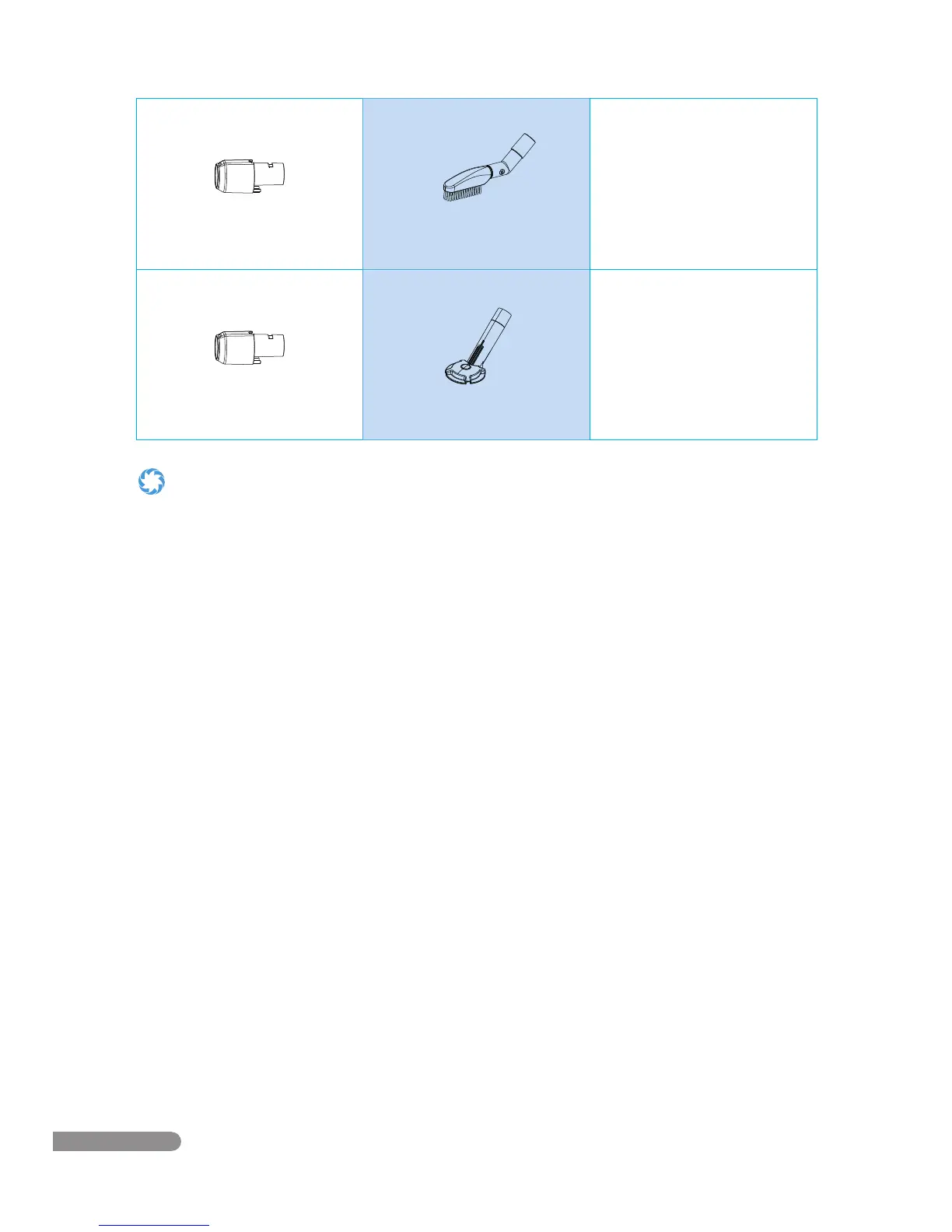 • Always connect or disconnect attachments while the vacuum is off.
