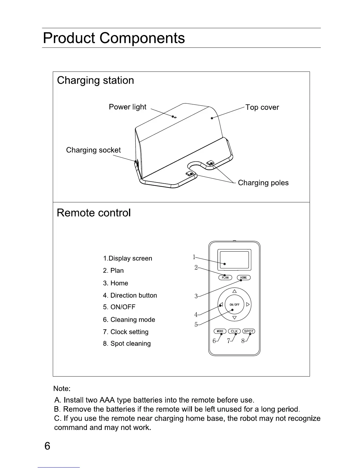 RolliTech RolliBot BL618 - Charging Station Description; Remote Control Overview