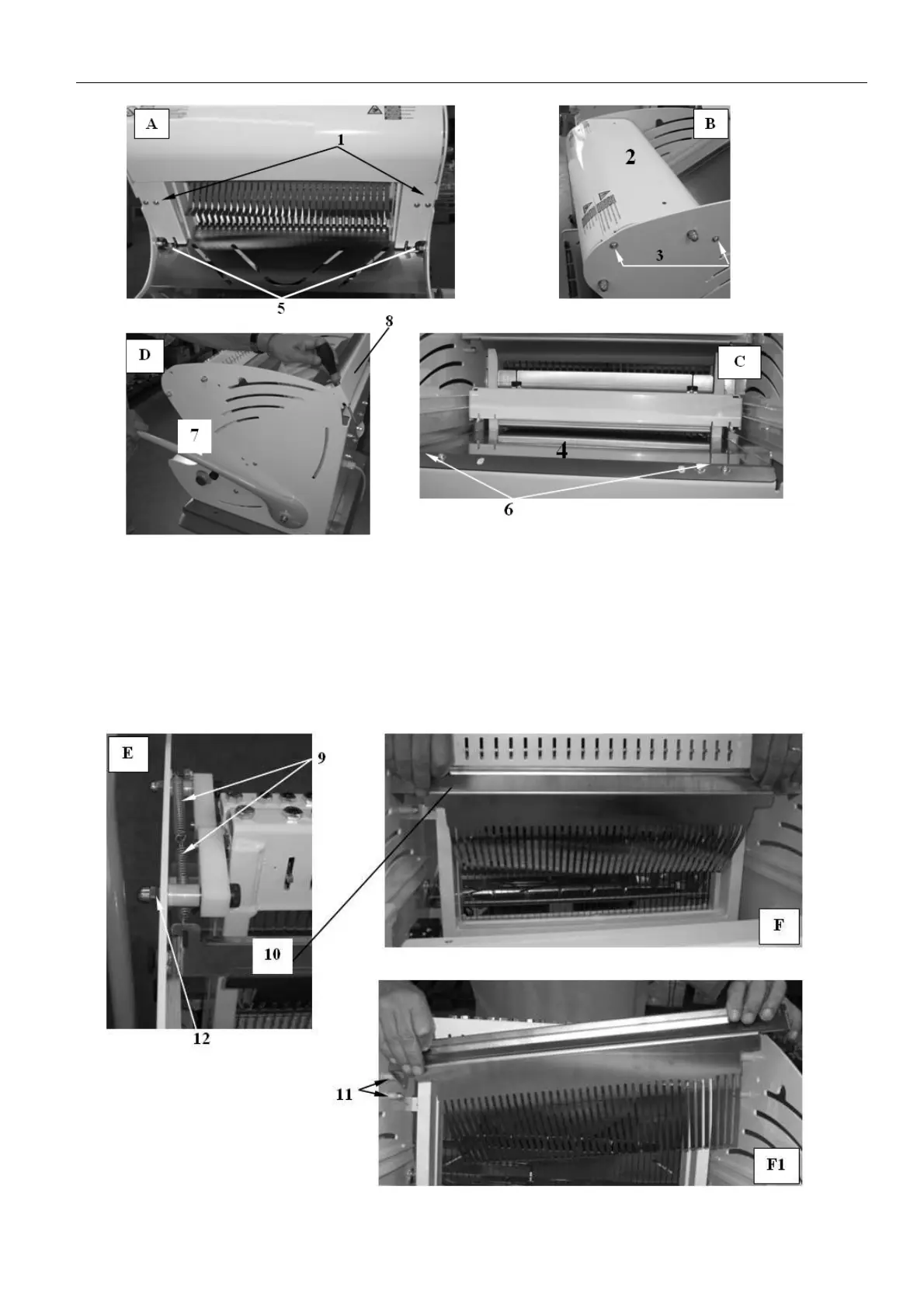 6. slightly raise the comb ref. 10 Photo F, extracting it from the support pins at the sides ref. 11