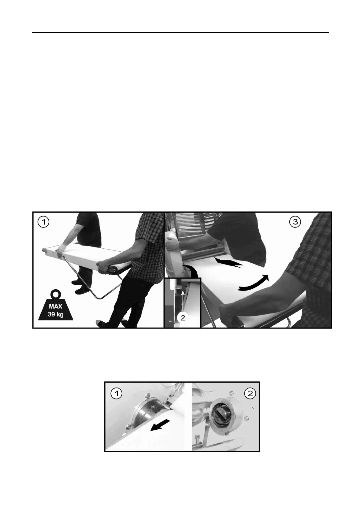 • At the same time, the other operator must slightly rotate the table, as indicated by the arrow,