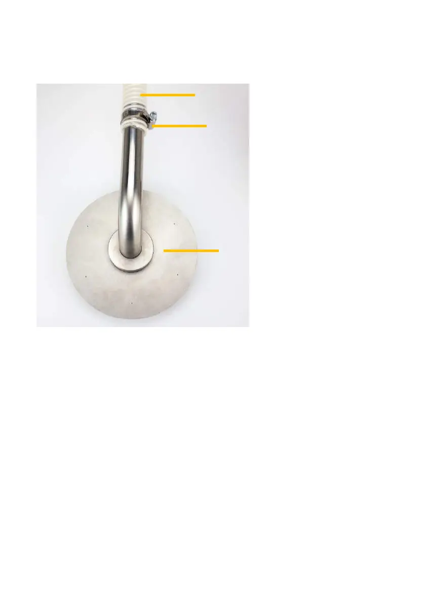 1. Make sure that the tube clamp (2) is on the flexible tube (1). Then slide the flexible