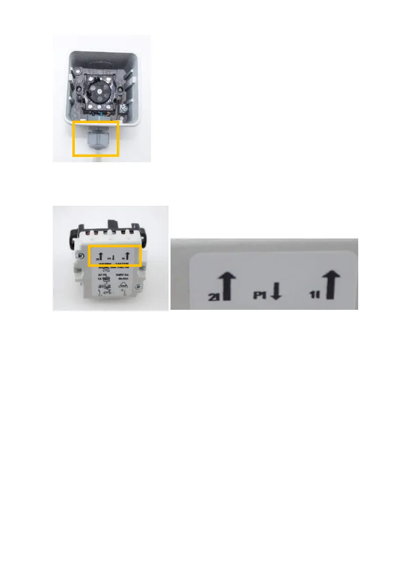 4. Mount the cable gland on the bottom of the switch and guide the cable through it