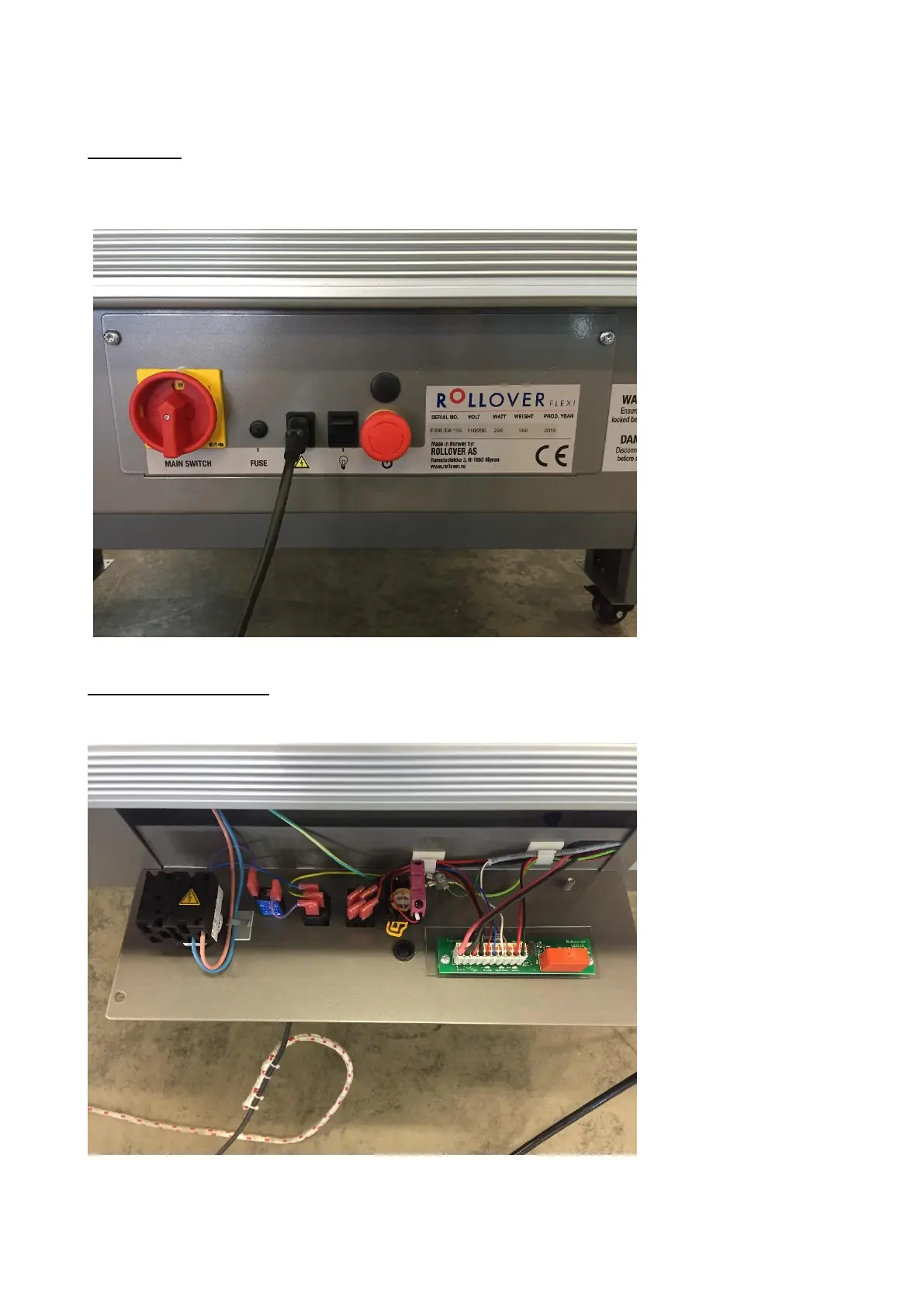 Main switch, fuse, power inlet, light switch, emergency stop, printed circuit board.