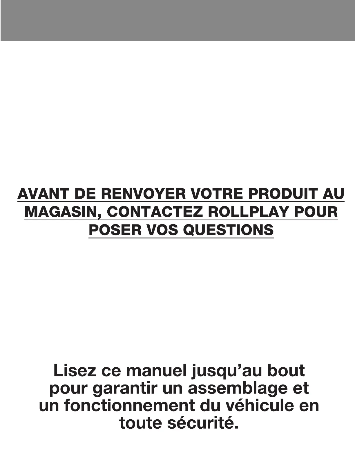 vos achats ou enregistrez votre produit sur www.rollplay.com, nous pourrions