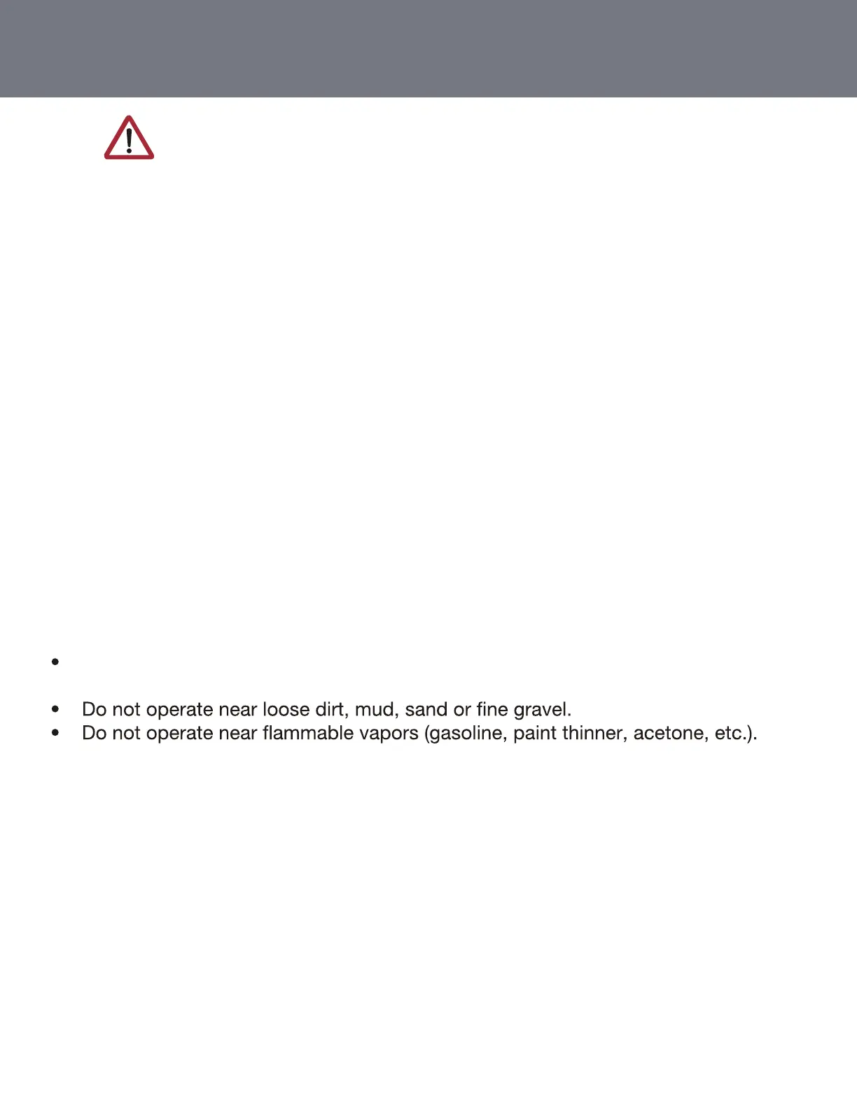 • Do not operate in dangerous weather conditions such as rain or snow.