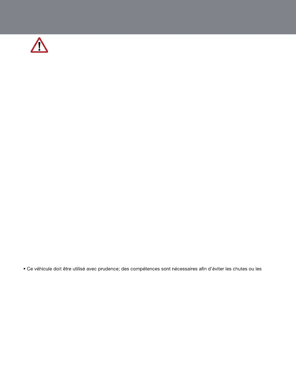 NE JAMAIS utiliser sur les routes, près de véhicules à moteur, sur ou près de pentes abruptes ou de marches,