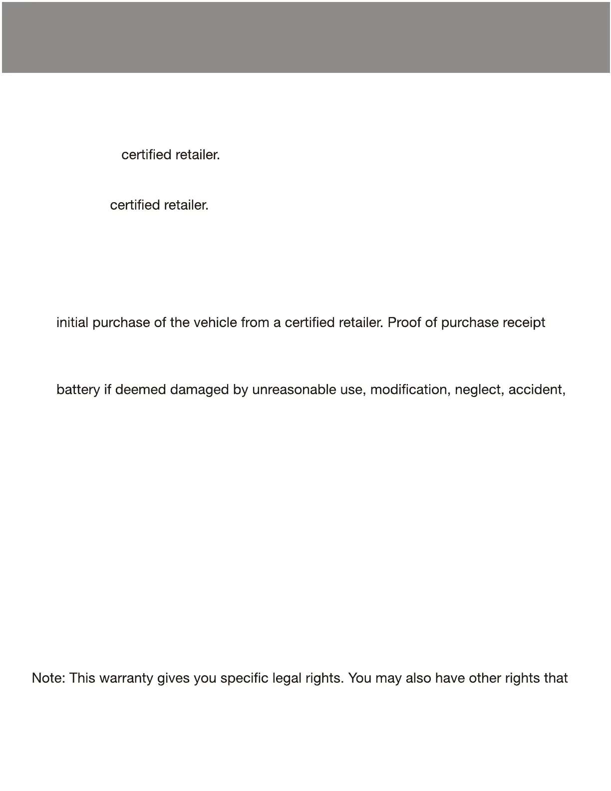 • This warranty covers normal use and does not cover the Rollplay vehicle or