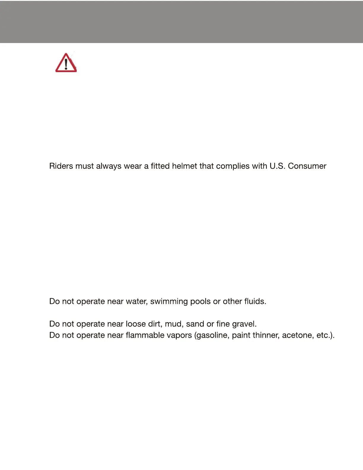 • Always use the vehicle in a safe, secure environment with adult supervision.