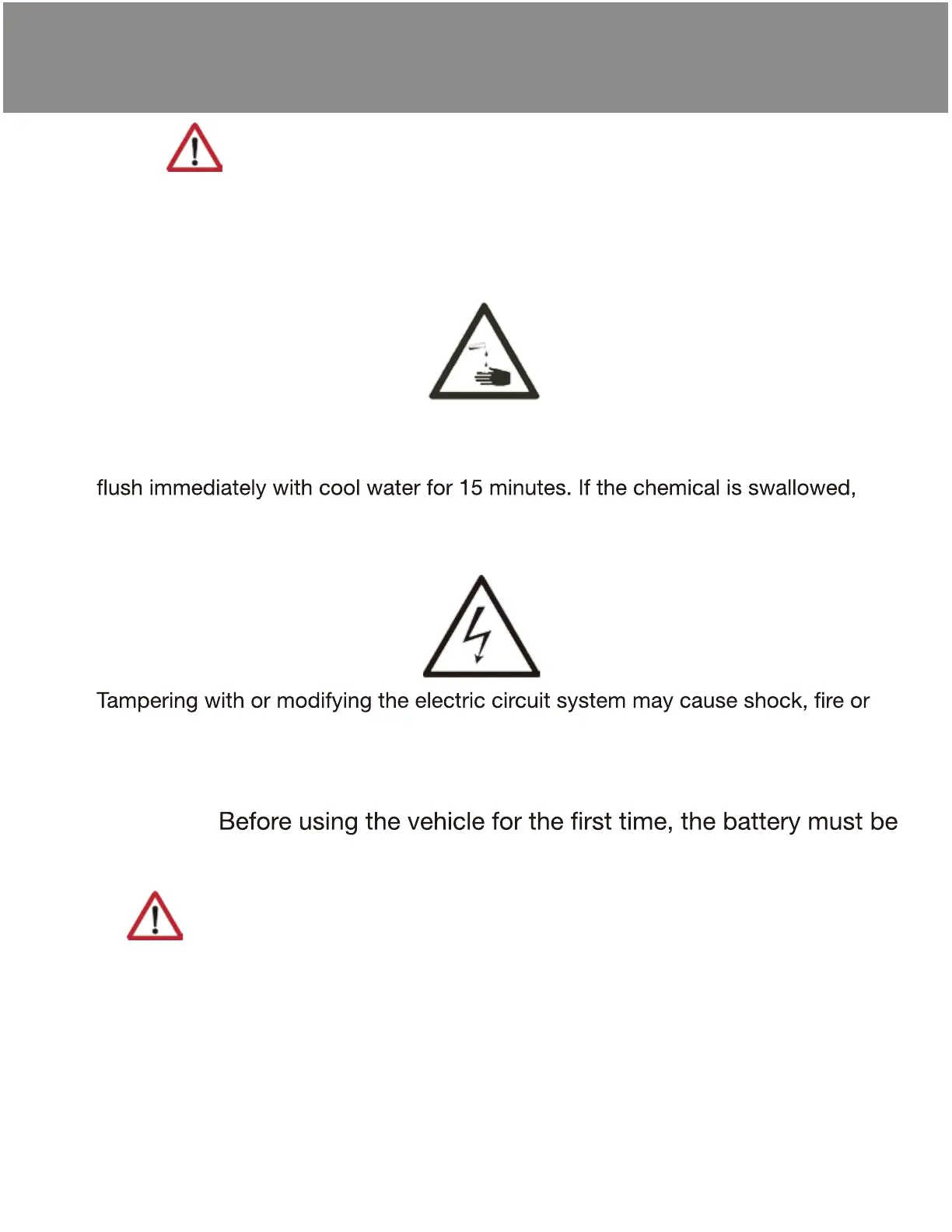 • Before using the vehicle, the rider must understand the vehicle controls and safety