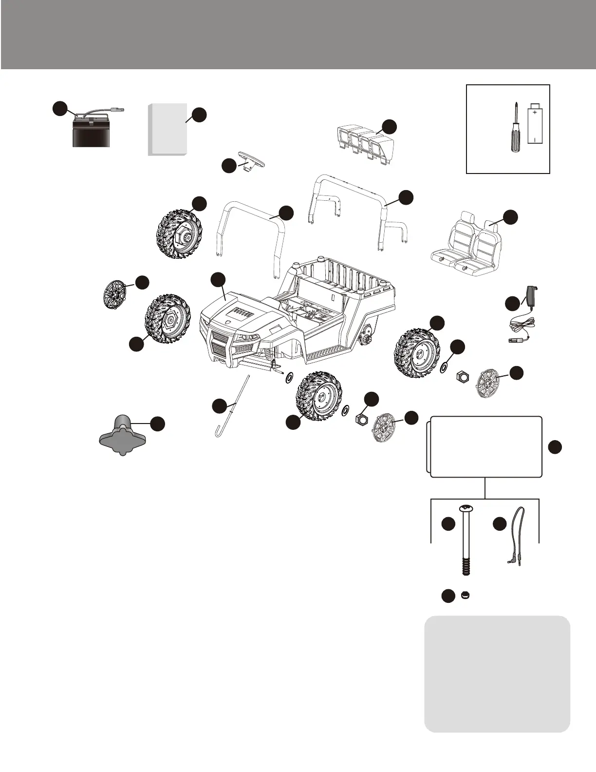 Rollplay STORM - Parts, Charging, and Assembly; Component Identification