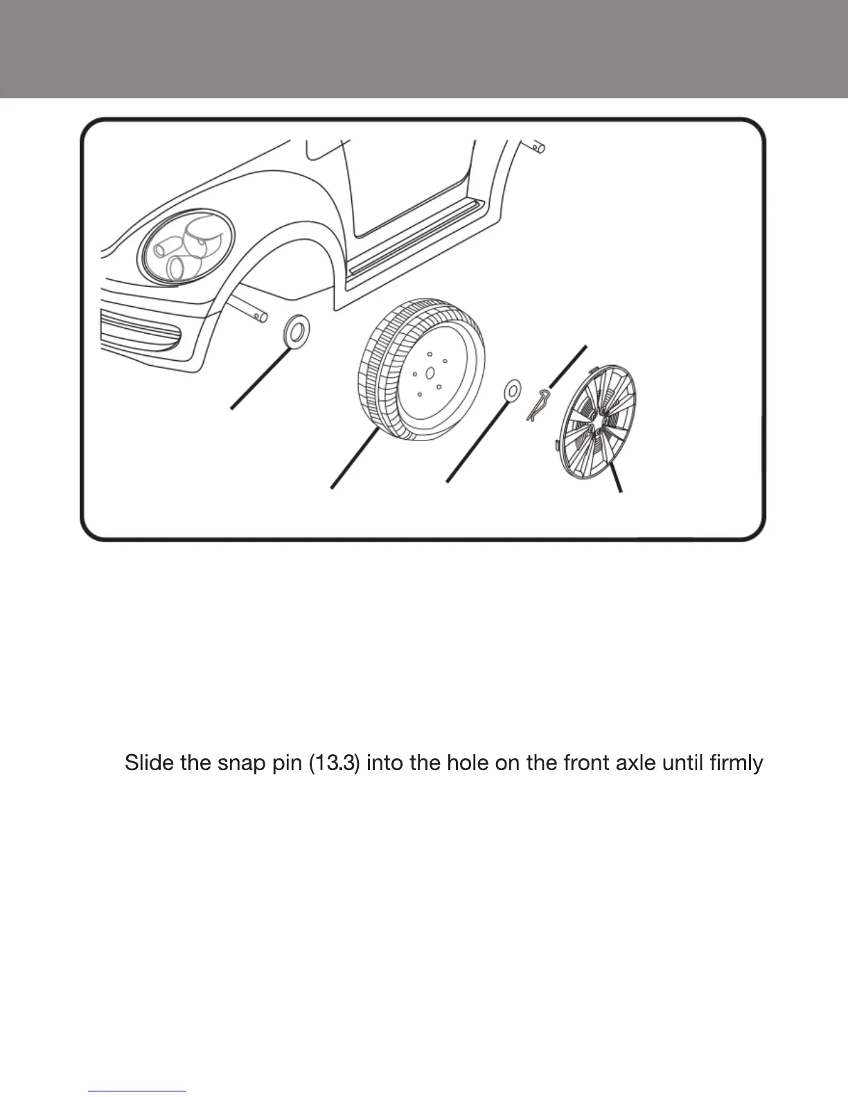 4. Slide another Φ10 washer (13.4) onto the front axle.