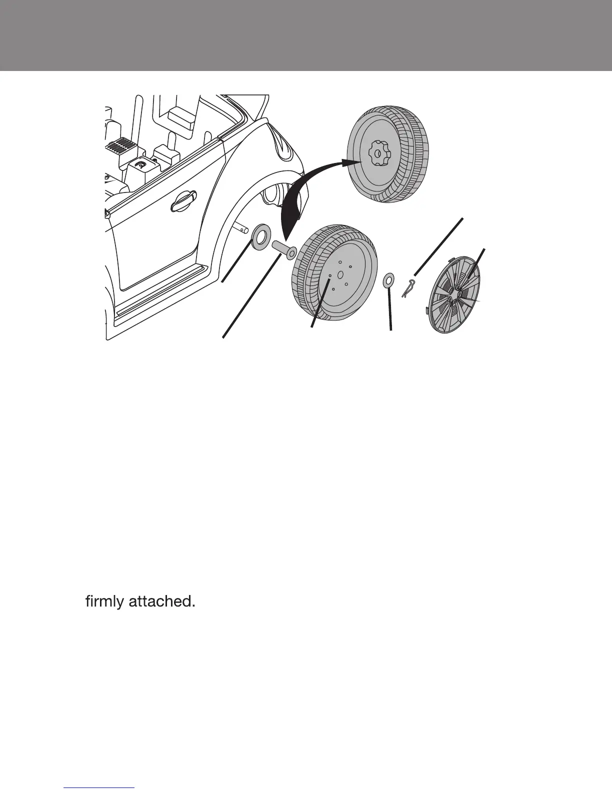 4. Slide the left rear wheel (8) onto the left rear axle. The side with