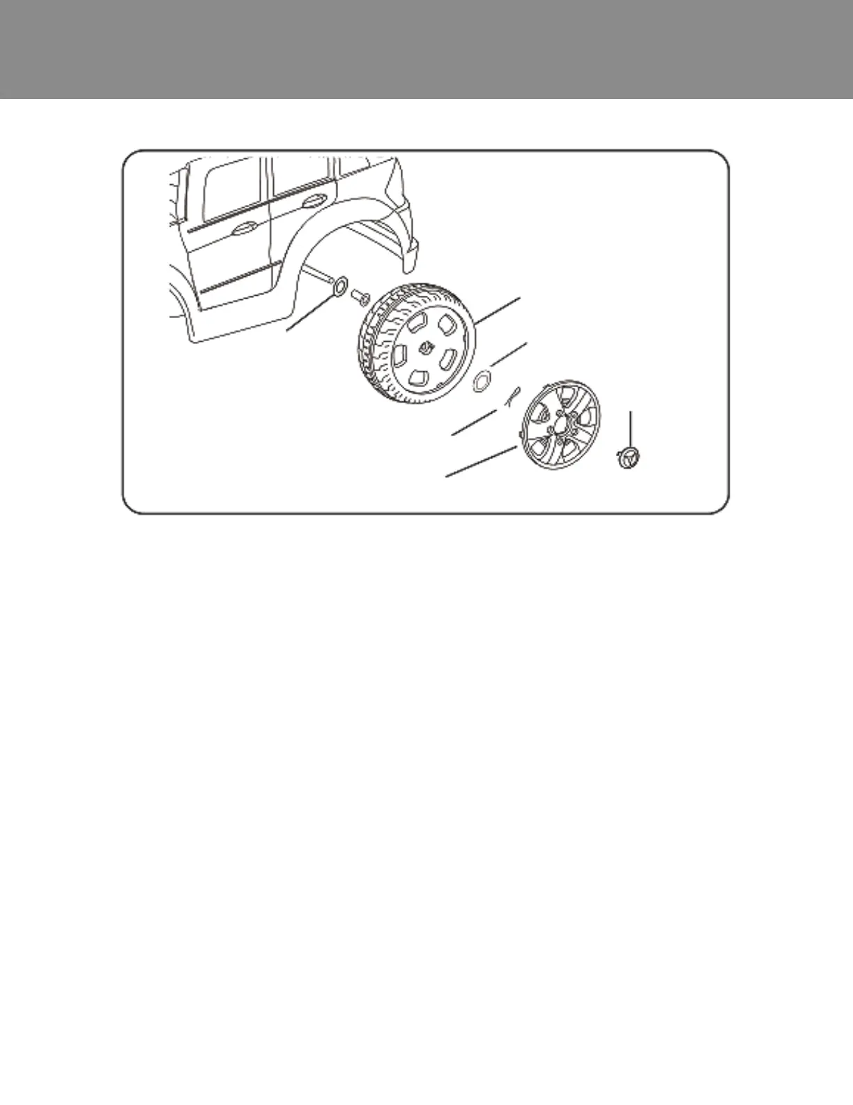 7. Snap the hub cap (22) onto the completed left wheel assembly.