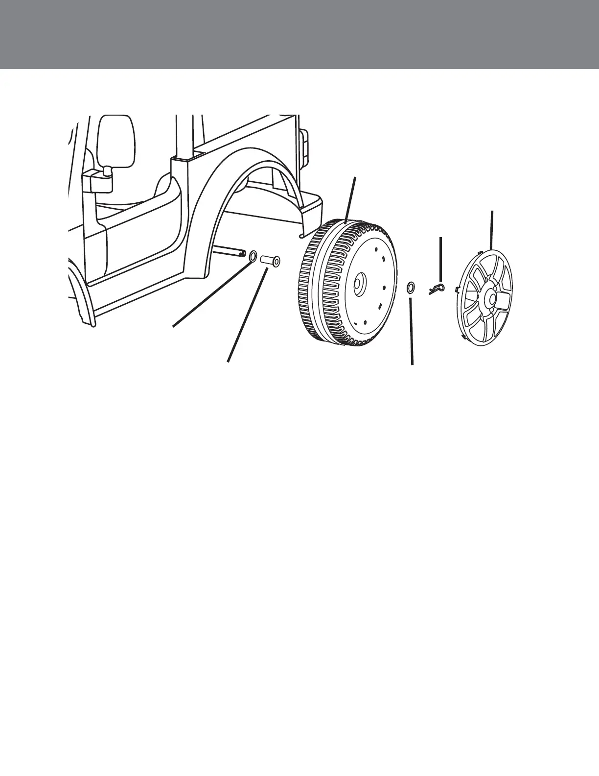 2. Slide the left rear wheel onto the left rear axle. The side with the