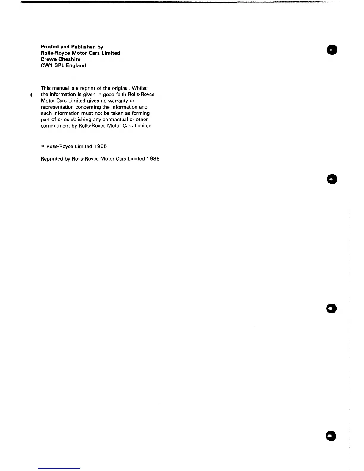 Reprinted by Rolls-Royce Motor Cars Limited