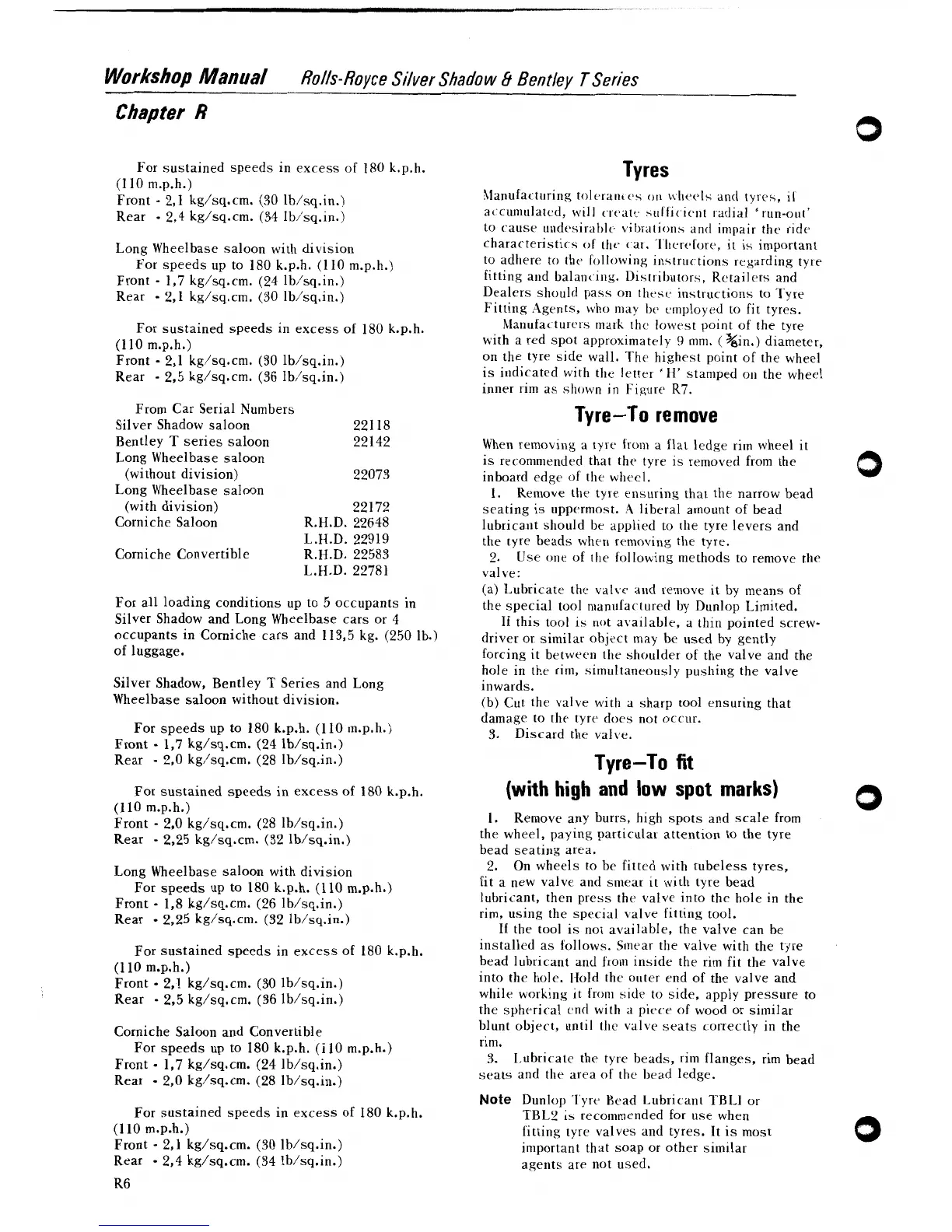 Rolls-Royce Bentley Corniche - Tyre-To Remove; Tyre-To Fit (with High and Low Spot Marks)