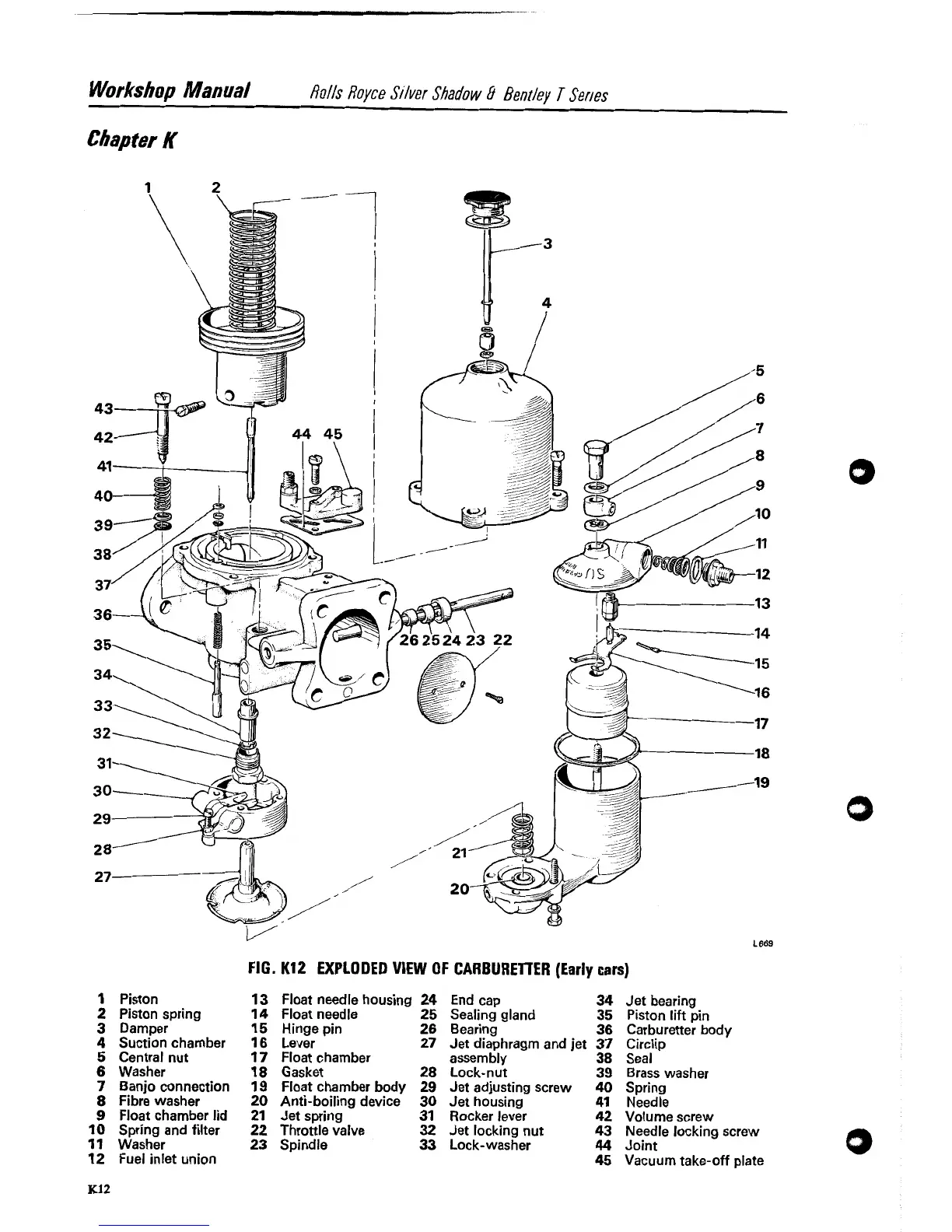 Rolls-Royce Bentley Corniche - Exploded View of Carburetter (Early Cars)