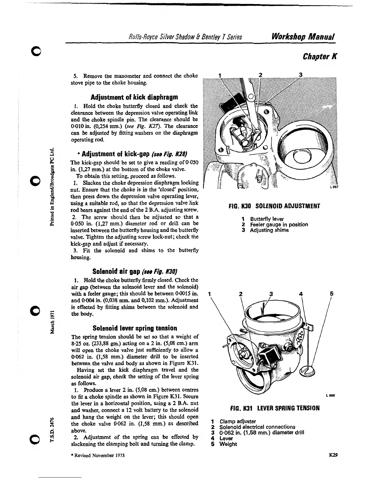Rolls-Royce Bentley Corniche - Lever Spring Tension; Solenoid Lever Spring Tension; Solenoid Air Gap; Adjustment of Kick Diaphragm;Kick-Gap