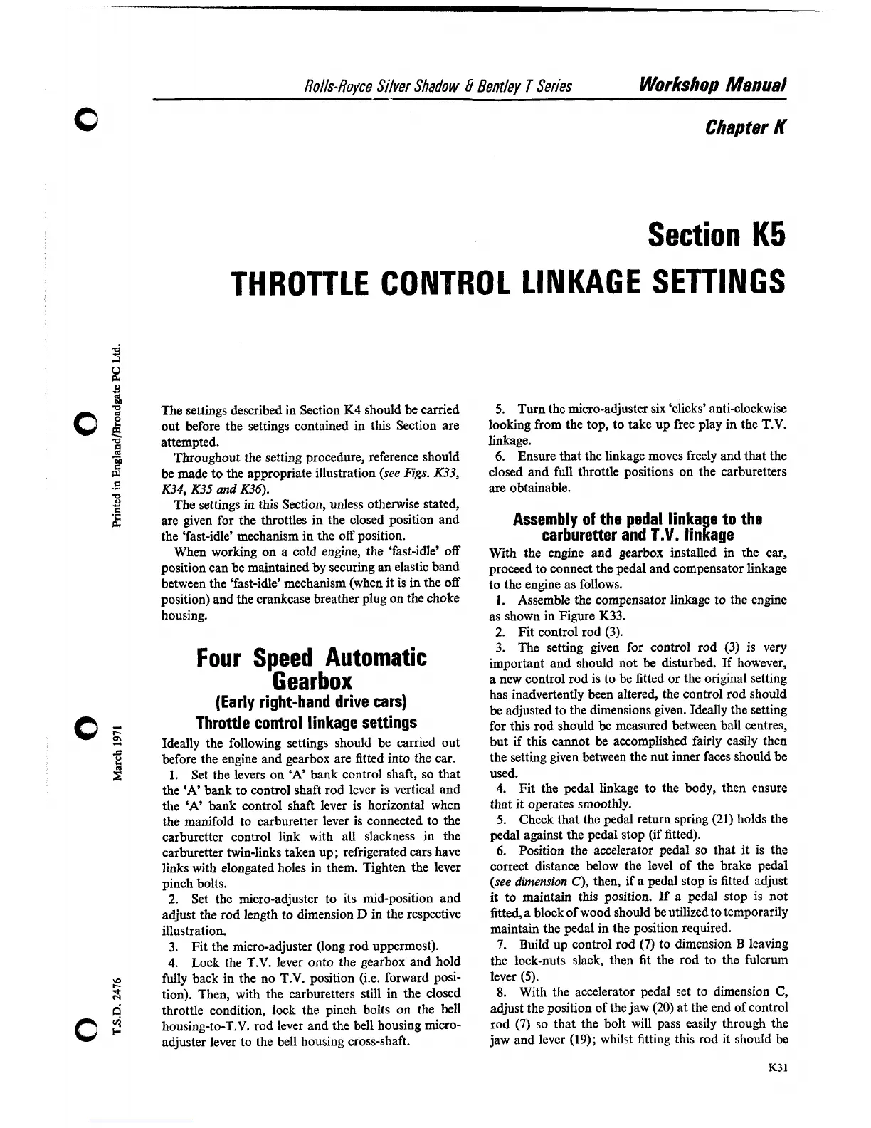 carburetter twin-links taken up; refrigerated cars have