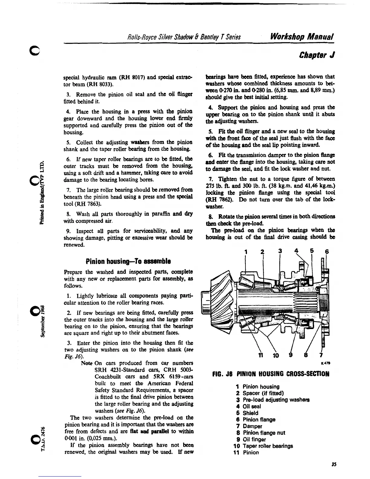 pinion bearing and it is important that the washers