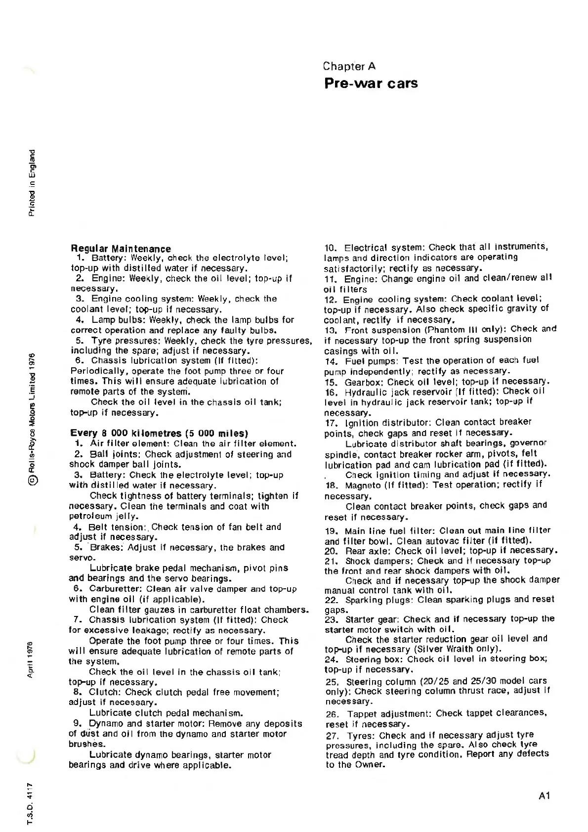 21. Shock dampers: Check and if necessary top-up