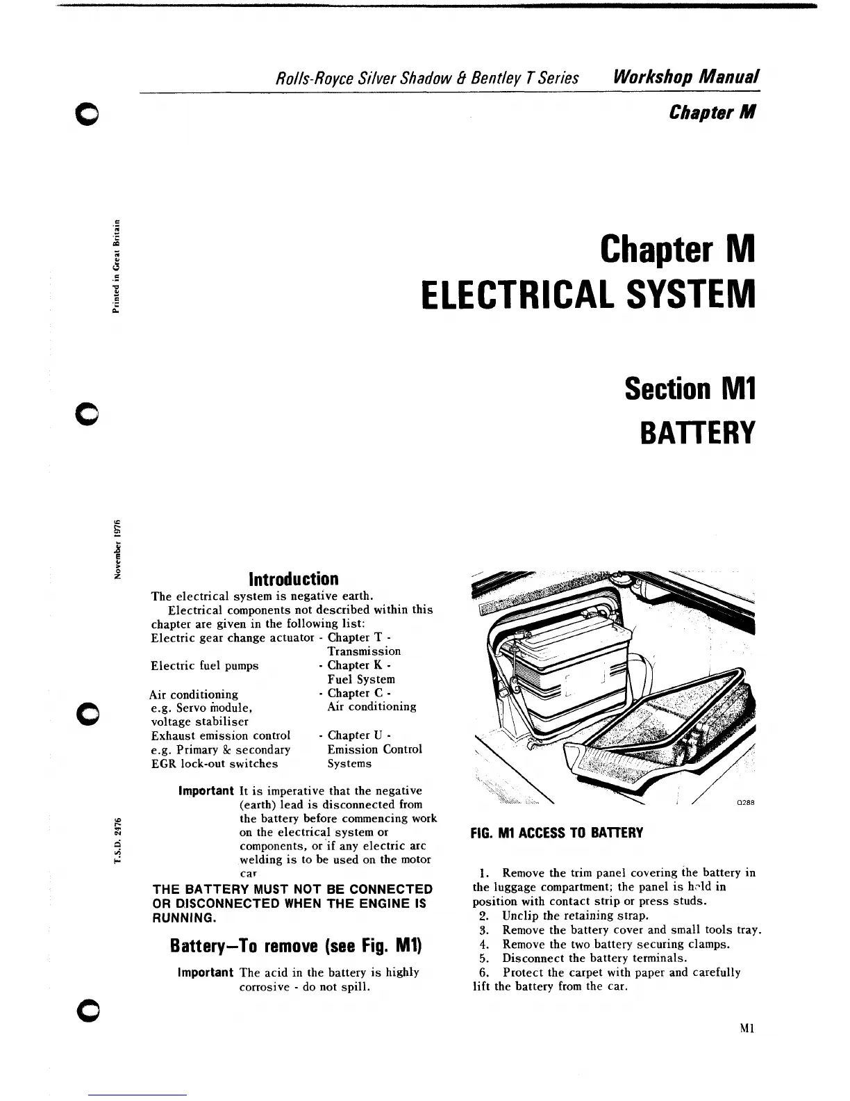 Rolls-Royce Corniche - Access to Battery; Battery-To Remove