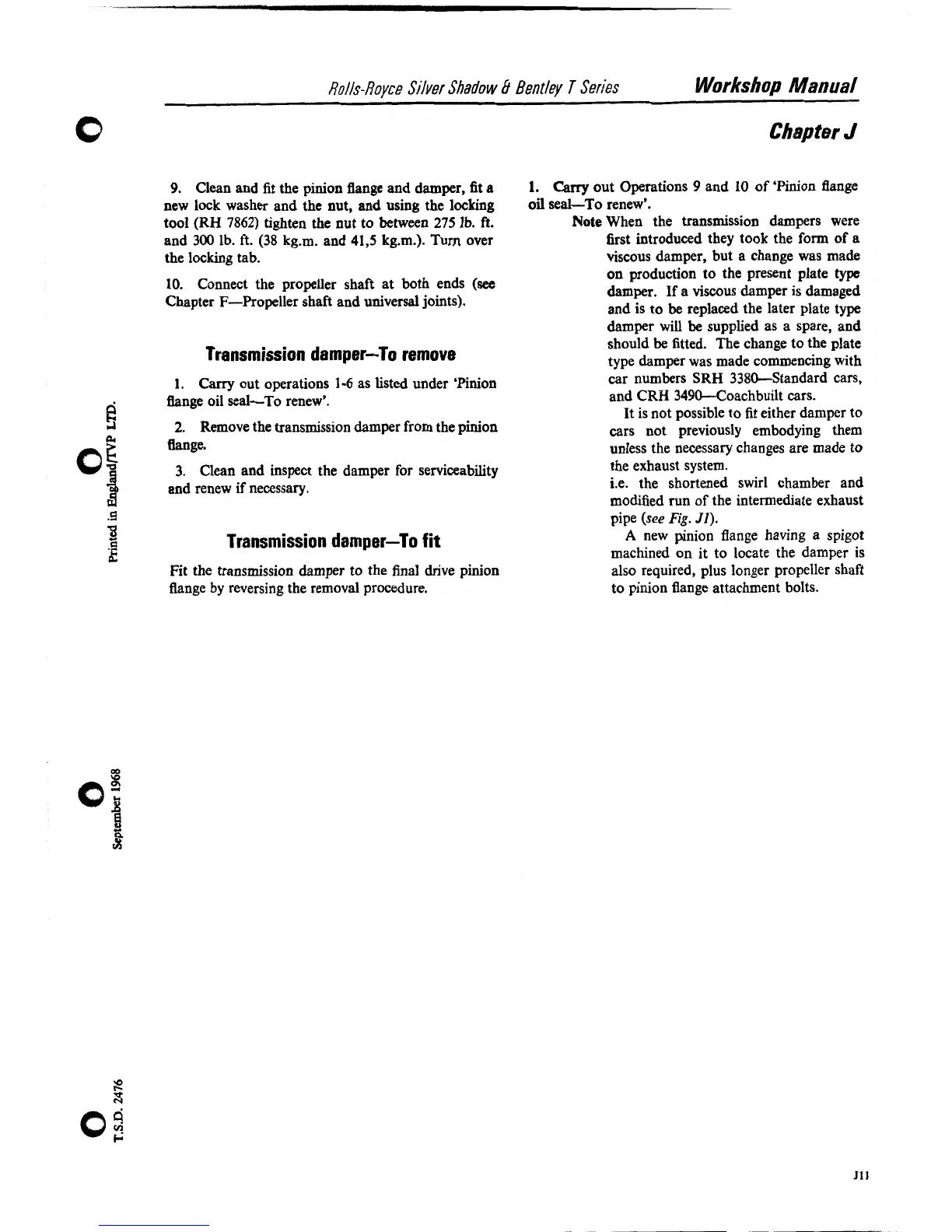 Clean and fit the pinion flange and damper, fit a