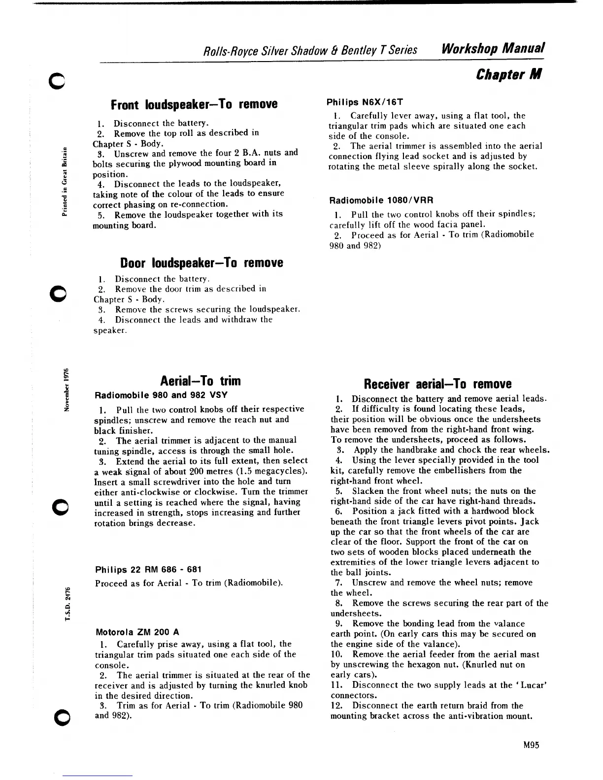 Disconnect the battery and remove aerial leads.