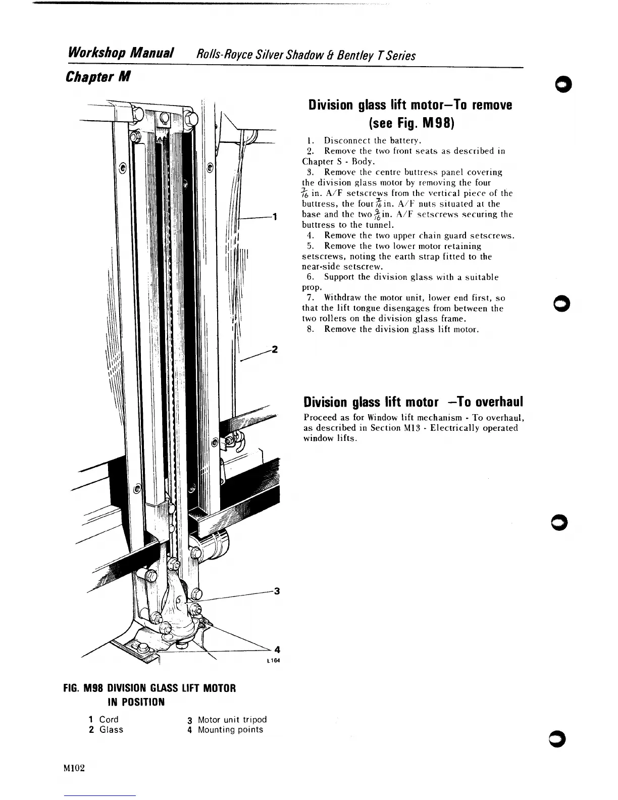 Division glass lift motor -To overhaul