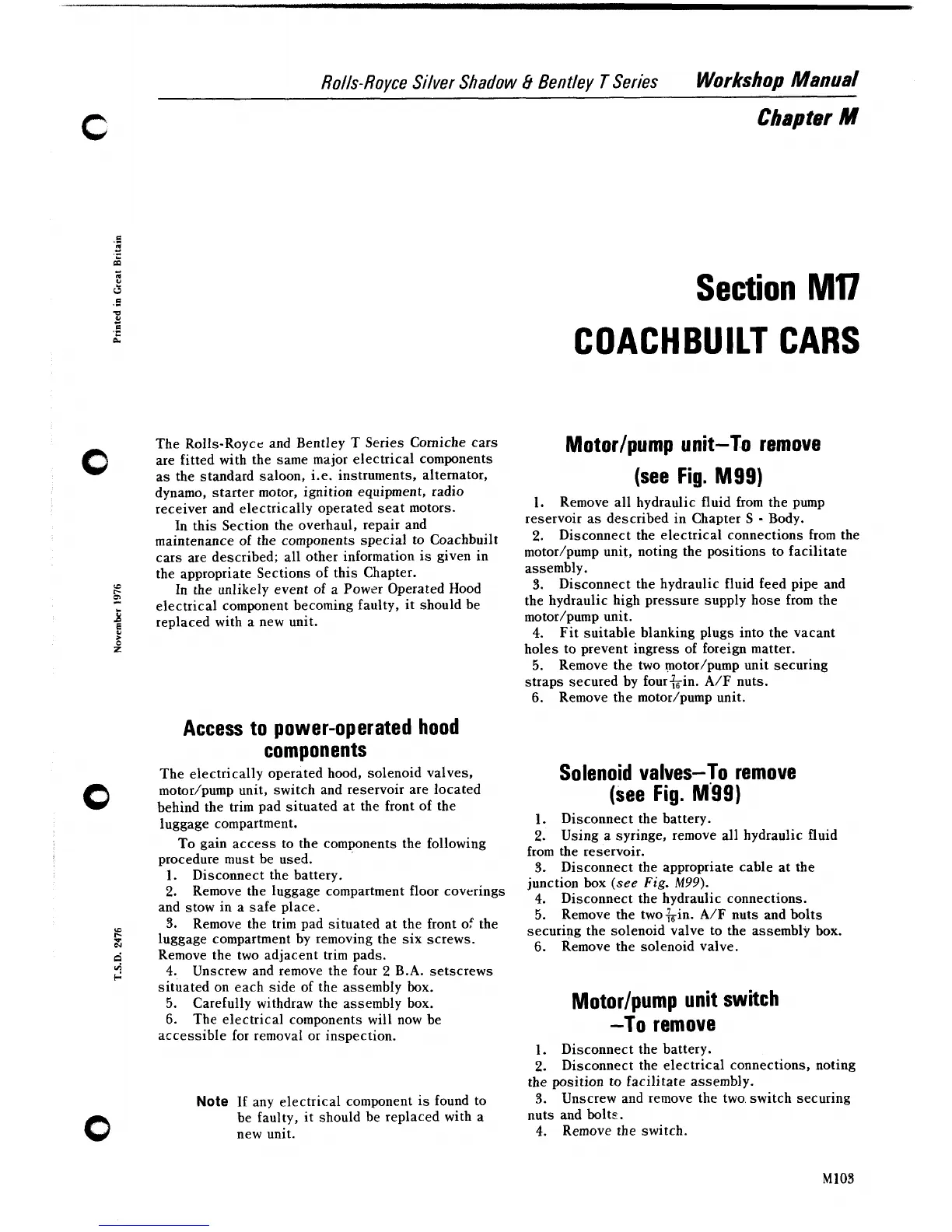 maintenance of the components special to Coachbuilt