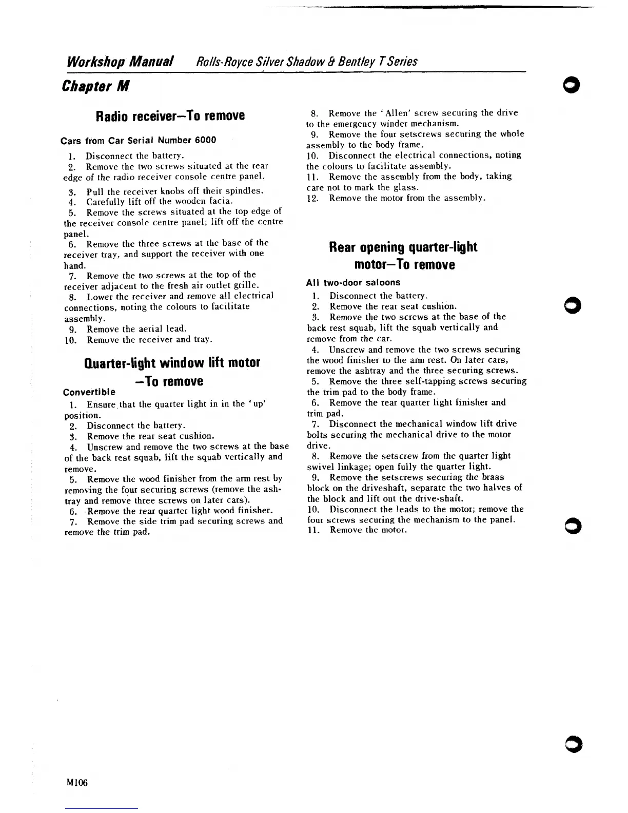 swivel linkage; open fully the quarter light.