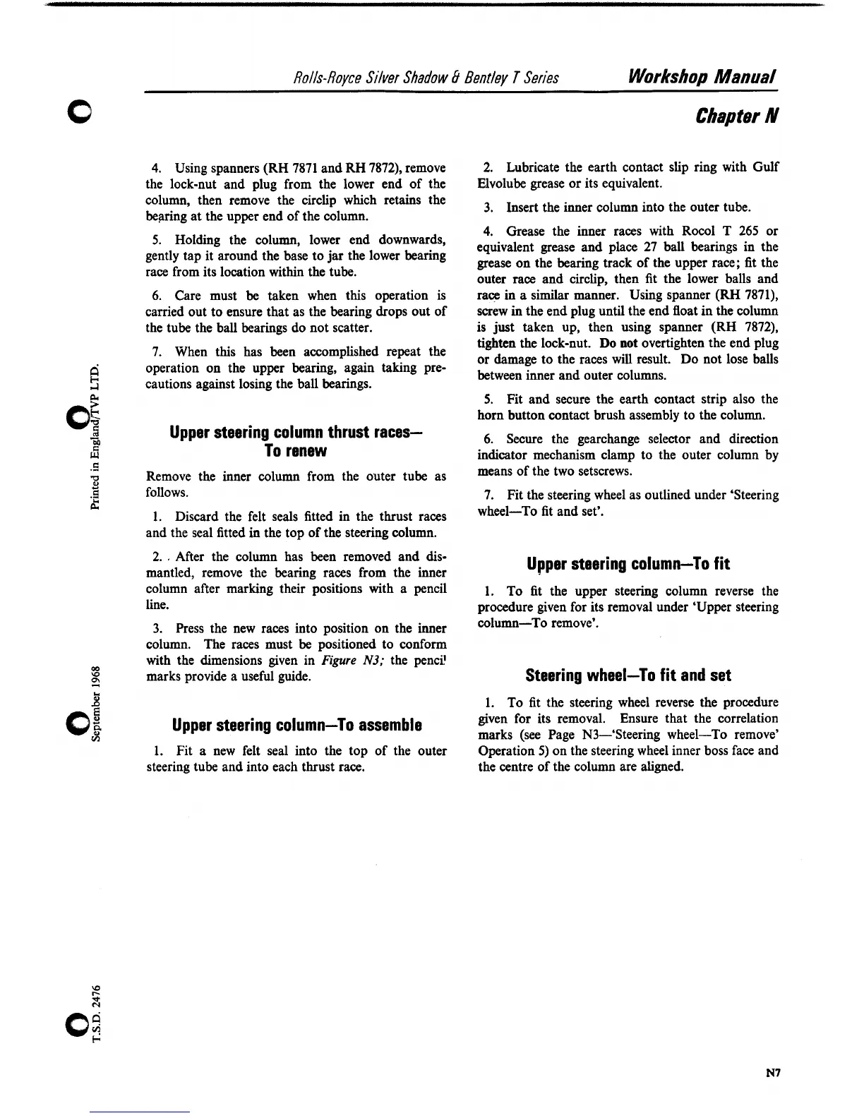 follows. 7. Fit the steering wheel as outlined under 'Steering