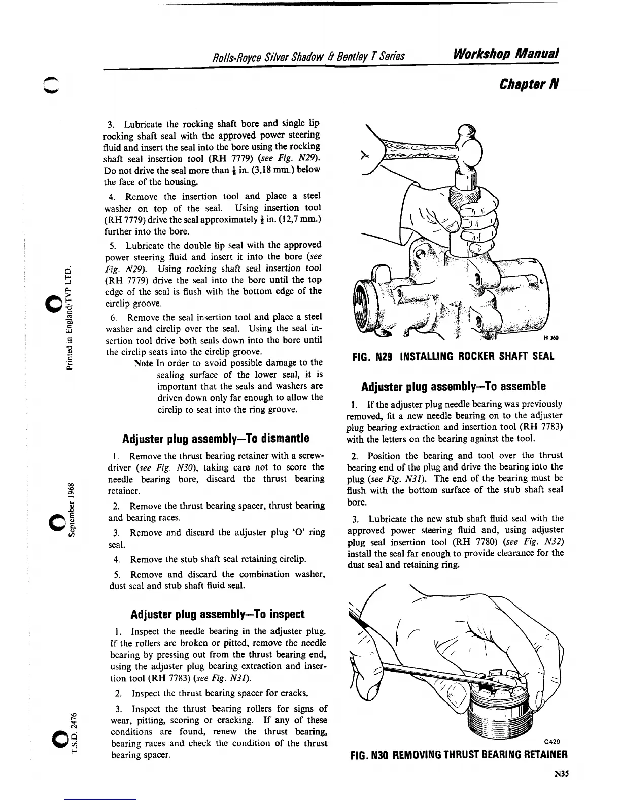 FIG. N29 INSTALLING ROCKER SHAFT SEAL