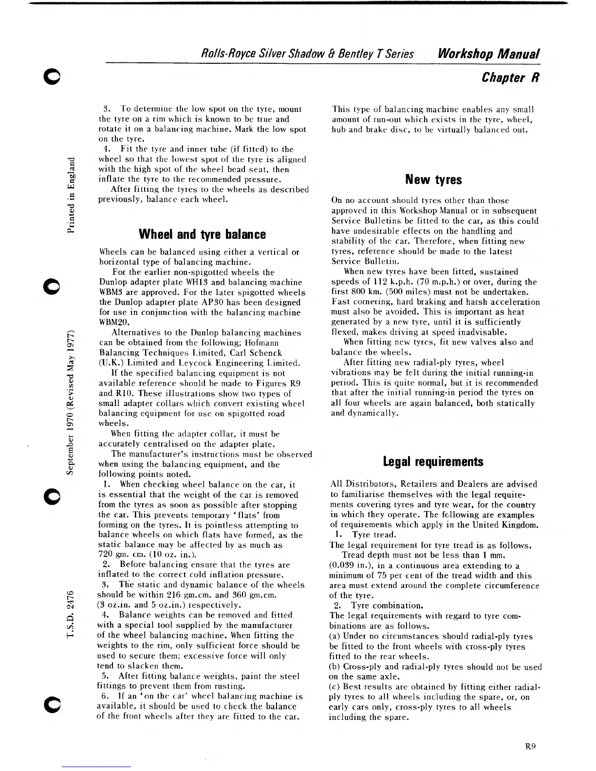 early cars only, cross-ply tyres to all wheels