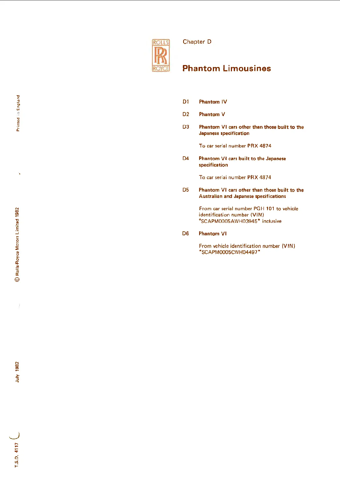 Rolls-Royce Phantom V - Phantom IV; Phantom V; Phantom VI cars other than those built to the Japanese specification; Phantom VI cars built to the Japanese specification
