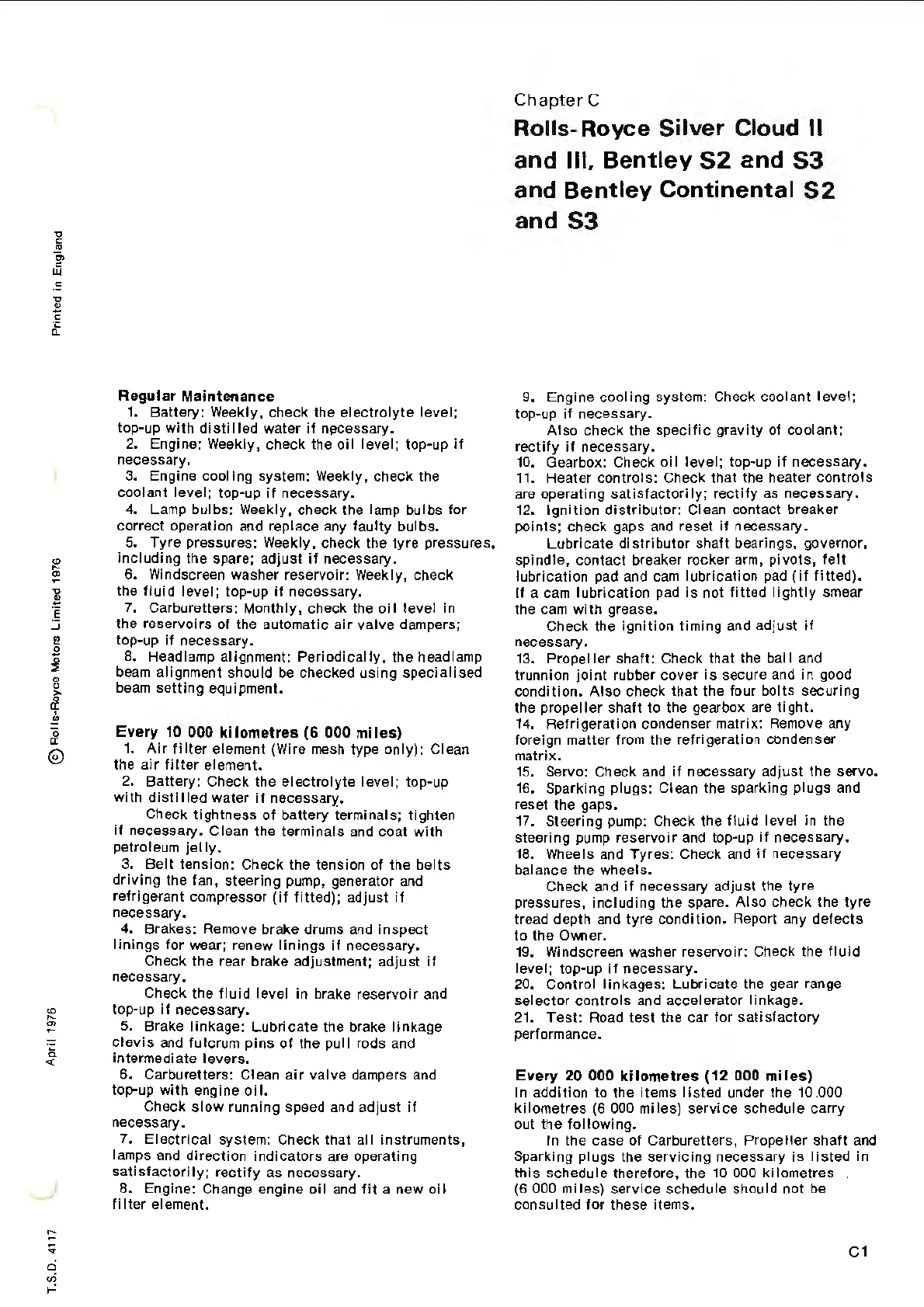 Every 20 000 kilometres (12 000 miles)