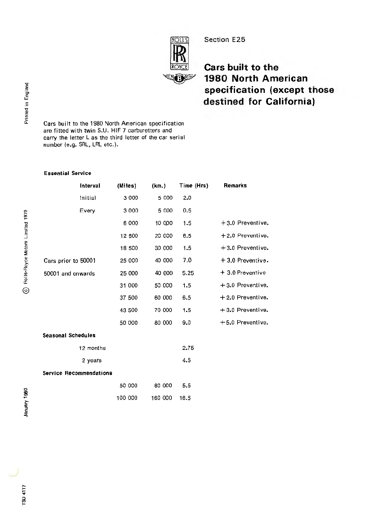 Rolls-Royce Phantom VI - Section E25 - Cars built to the 1980 North American specification (except those destined for California)