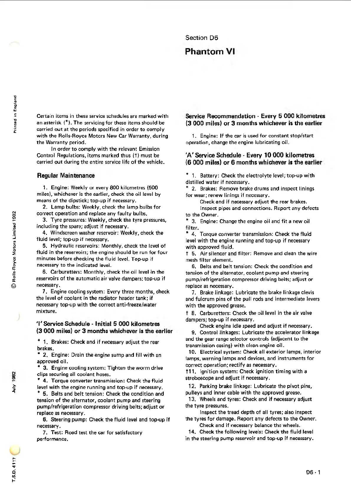 an asterisk {"}. The servicing for these items should be