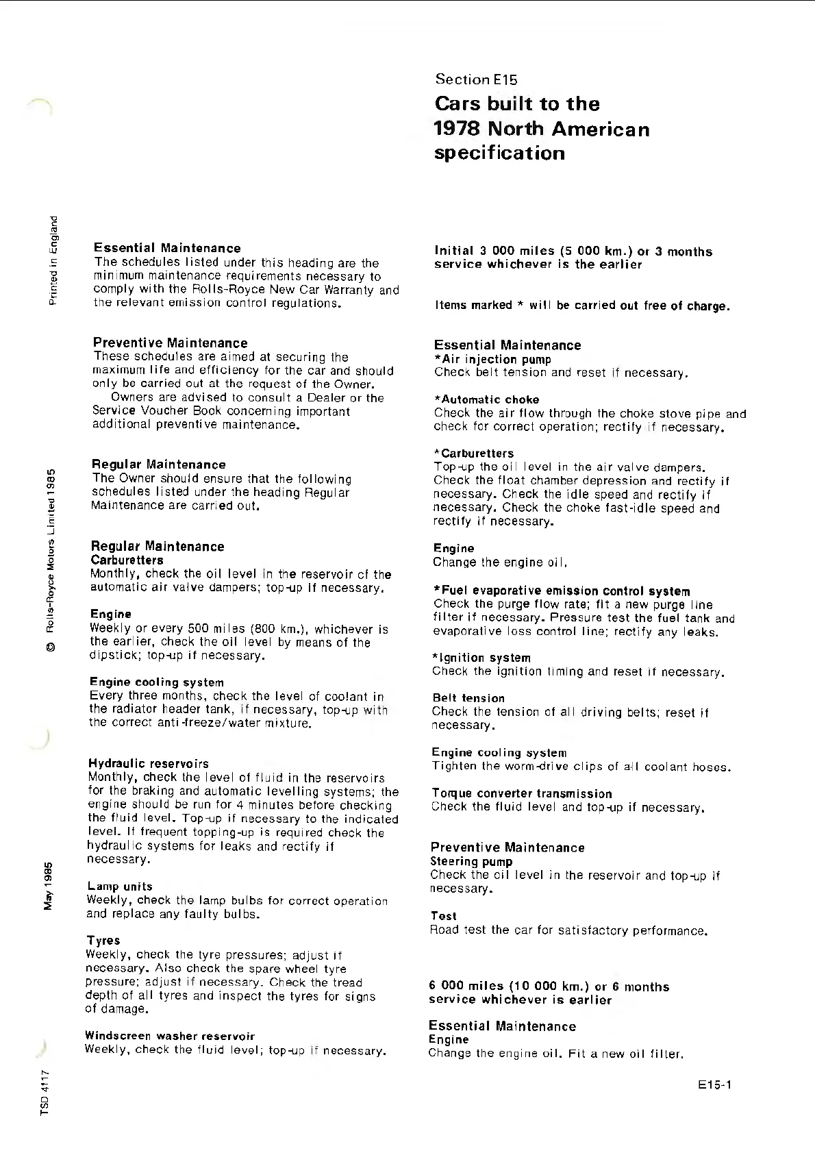 maintenance requirements necessary to