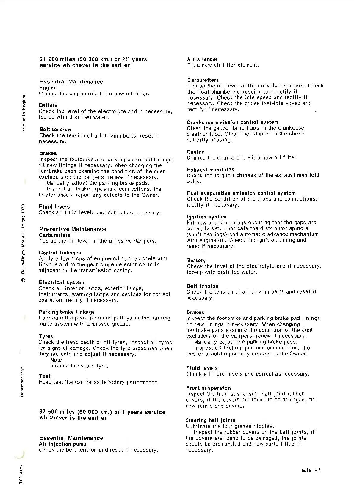 37 500 miles (60 000 km.) or 3 years service